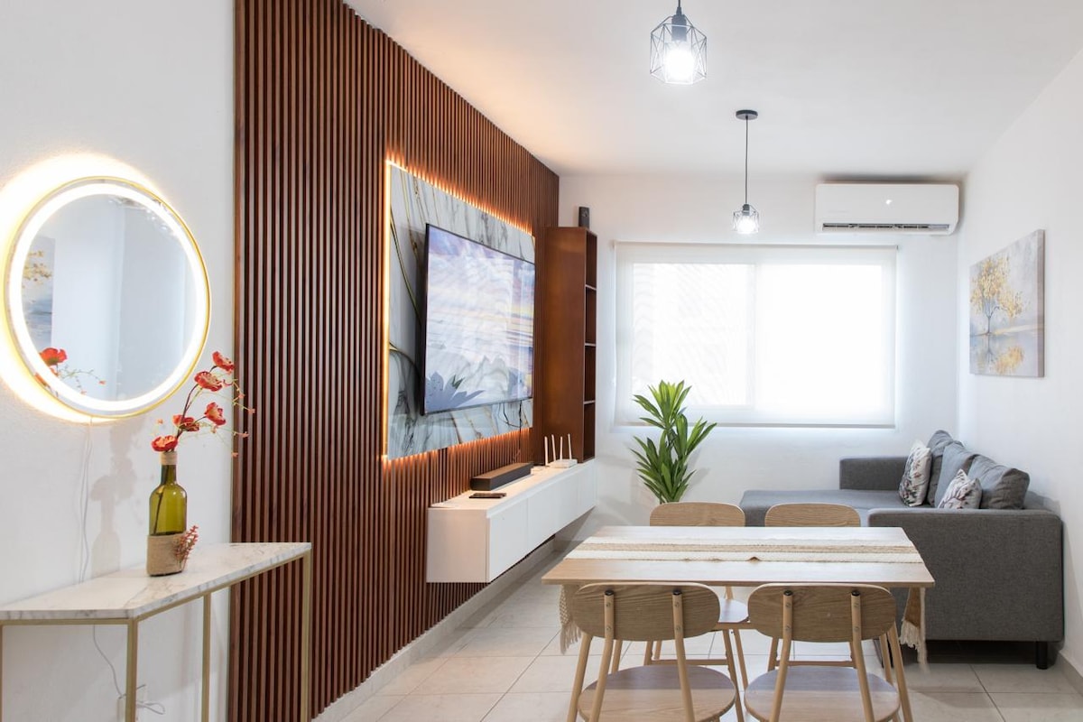 ¡Tu oasis jarocho! Departamento con estilo y brisa marina ¿Vienes a disfrutar del Puerto en familia o de trabajo? Relájate en este departamento lleno de luz y frescura, diseñado para que te sientas como en casa desde el primer minuto. Ubicado a 15 minutos del aeropuerto , es el punto de partida ideal para explorar Veracruz o simplemente descansar. Totalmente equipado: Cocina completa, café de cortesía, Smart TV, Wi-Fi veloz y camas que "te abrazan". Además: alberca y terraza. Reserva ahora.