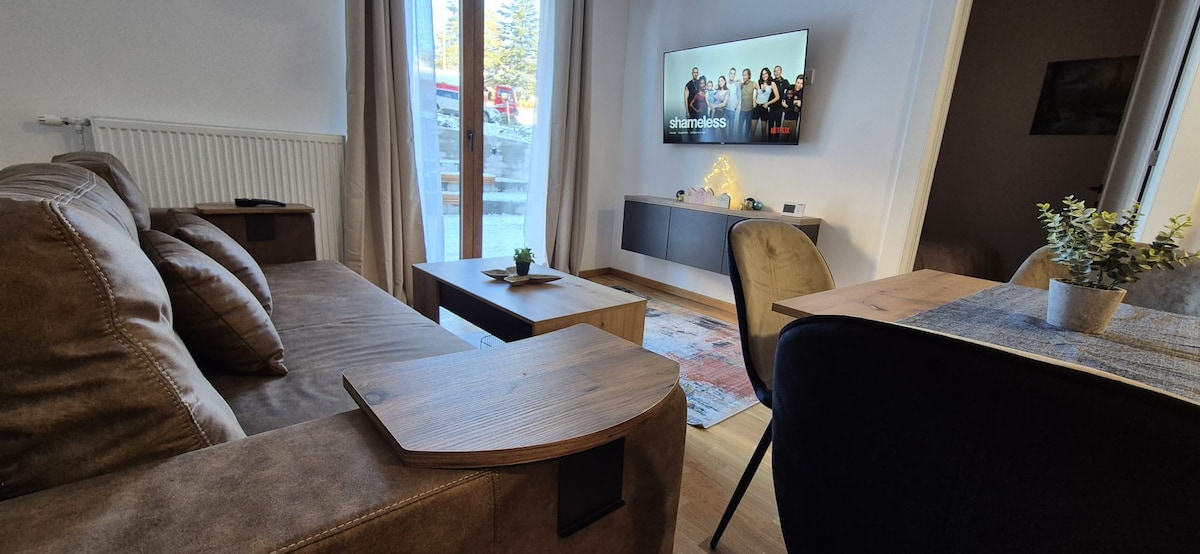 222Divcibareは、ゲレンデから250mの場所にある居心地の良いアパートです。 この32m²のアパートには、拡張ソファを備えた快適なリビングルーム、独立した寝室、シャワーとヘアドライヤーを備えたバスルームがあります。 キッチンにはコンロ、オーブン、冷蔵庫、トースター、食器、コーヒー愛好家のためのモカポットが備わっています。 1階に位置するこのアパートは、スキー場の素晴らしい景色を望む広々としたテラスを備えており、大人3名様まで、またはお子様連れのご家族に最適です。