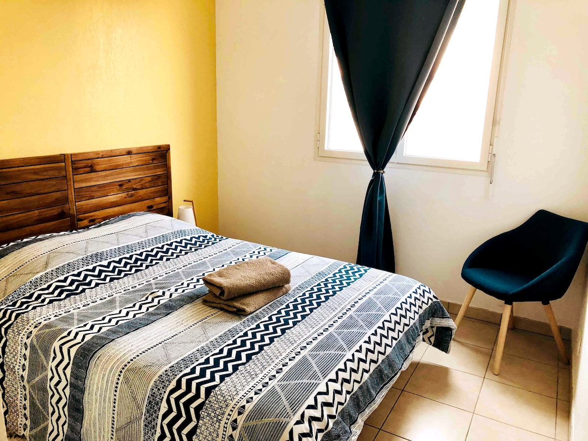 スーパーマーケットとビーチの近くにあるエアコン付きの日当たりの良い2寝室