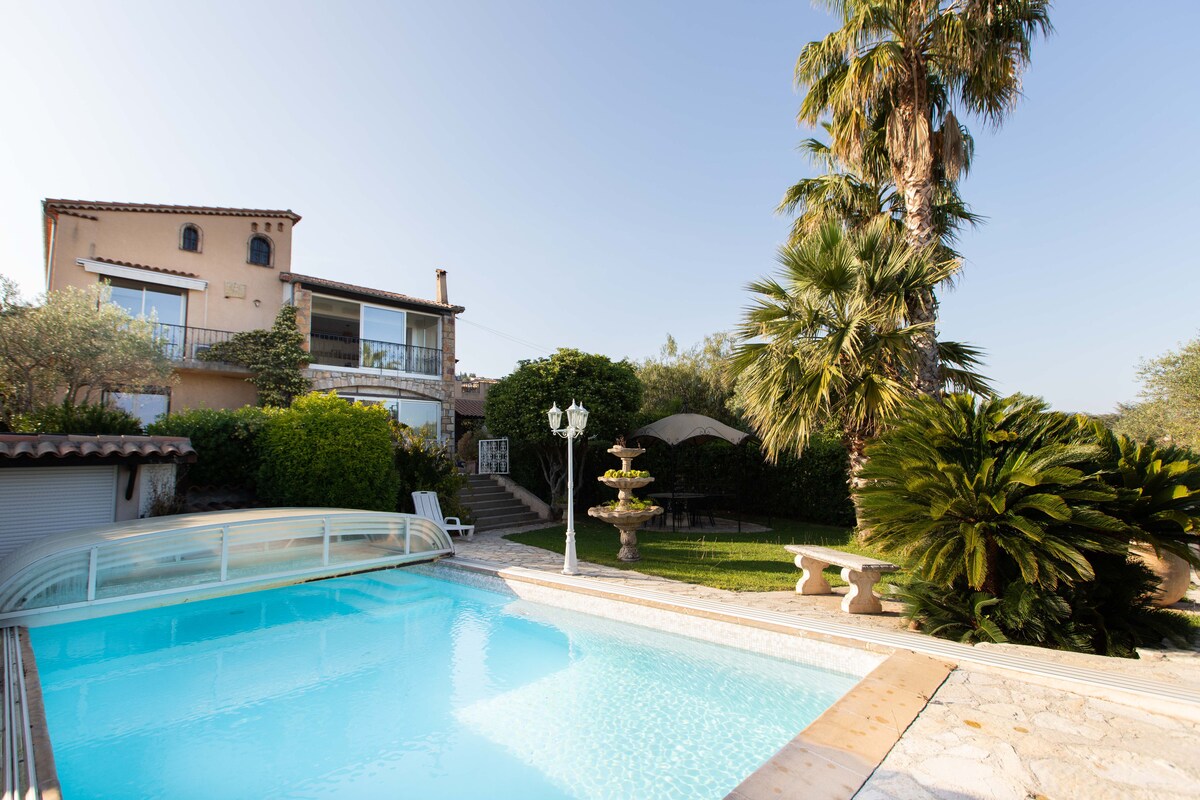 ヴィラの1階にある、独立した美しいスタジオ。海とプライベートプールに面し、観光の喧騒から離れています。海、アンティーブ岬、レラン諸島のパノラマビューを望む緑に囲まれた場所。要求の厳しいカップルに理想的な休暇。 カンヌとアンティーブから10分、ゴルフ・ジュアンとビーチから5分、大きなショッピングセンターから5分(車で)。 専用駐車場、エアコン、インターネット、テレビ接続。 ドミニクとジェナの温かく笑顔のある歓迎