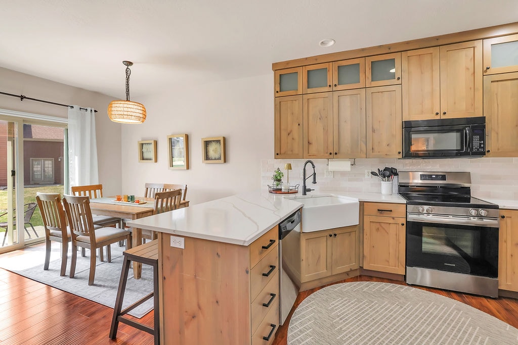 私たちのスタイリッシュなタウンハウスは、タマラックリゾートとレイクカスケードからわずか数分の、町の中心部に位置しています。清潔な仕上げ、快適な家具、滞在に必要なものがすべて揃ったモダンなインテリアに足を踏み入れてください。オープンリビングエリアは、ゲレンデや湖で1日過ごした後にくつろぐのに最適です。フルキッチンで、お気に入りの食事を簡単に調理できます。レストラン、ショップ、トレイル、一年中楽しめるレクリエーションに簡単にアクセスできるこのタウンハウスは、ドネリーでの休暇に理想的な拠点です。