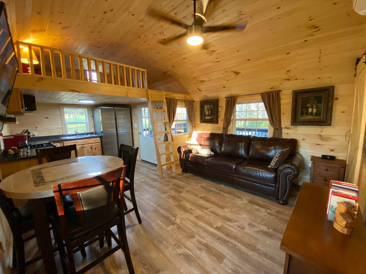 サニーヒルのAirbnbでご家族一緒におくつろぎください。丘の上にある7エーカーの森の中にあり、空気が新鮮で、谷や周辺の景色が素晴らしいです。当キャビンには、高速Wi-Fi、スマートテレビ、Samsung家電、フルサイズのバスタブとシャワー、LGのフロントローディング洗濯機と乾燥機、寝室にはクイーンサイズベッド、クイーンサイズソファーベッド、ロフトにはフルマットレスベッド、ガスバーベキューと焚き火台など、ご自宅にあるようなフルサイズのアメニティがすべて揃っています。屋内448平方フィート、屋根付きポーチ256平方フィート