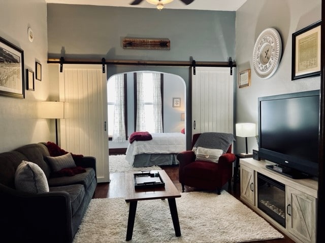 This loft is situated above a small town bustling coffee shop, also overlooking the park in the town square. The space is the perfect combination of old historic charm with a modern urban flair with plenty of natural sunlight streaming through the front windows. The kitchen flows seamlessly into the living room where there are multiple seating options. The bedroom and living room have smart TVs if you want to use your own streaming site. The spa inspired bathroom has numerous amenities included.