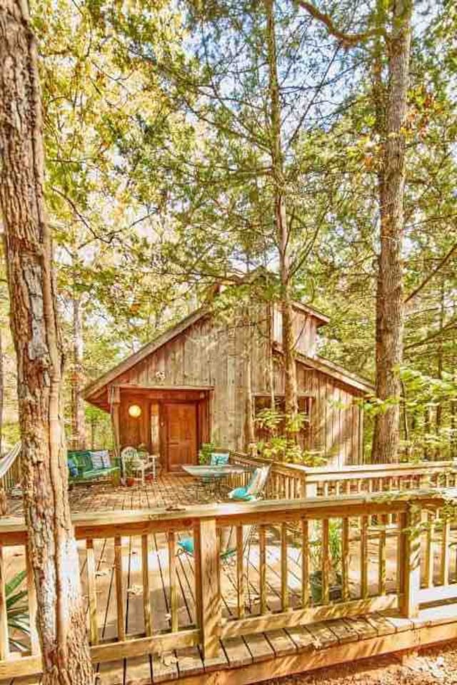 テキサス州ガーデンバレーの木の上にあるゴージャスなツリーハウスの隠れ家。 新婚旅行、記念日、サプライズのロマンチックな旅行に最適な場所です! ツリーハウスの楽しさと想像力をエレガンスと組み合わせ、大人がリラックスして再びつながり合えるようにモダン化しました。 バルコニーの木々の中でコーヒーを楽しみ、夕日を眺めながらワインとチーズを楽しみ、屋内/屋外シャワーを楽しみましょう。 設備の整ったキッチンと屋外の火鉢グリルは料理が好きな方に、素晴らしい地元レストランは料理が苦手な方に最適です。