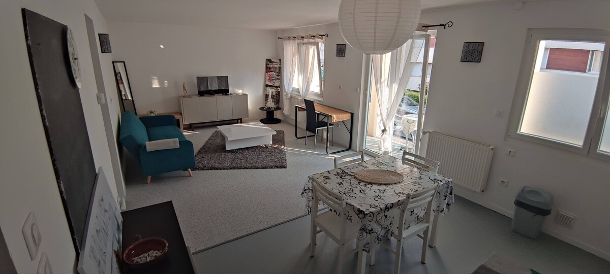 ナンシーの中心部に位置するジャンヌ・ダルクは、最大4人まで収容可能な素敵なココーンで、高品質の製品、テラス、庭園であなたを魅了します。 明るく、上品に改装されており、高品質の寝具が備わっています。 近くにはパン屋、カルフールシティ、レストラン、薬局などの多くのお店があります。サンタマリア公園から徒歩4分、駅から11分、モンデゼルトラム停留所から3分です。 高速道路、駅、トラム、ARTEM、Blandan、CHU、Braboisなどへのアクセスが簡単です。