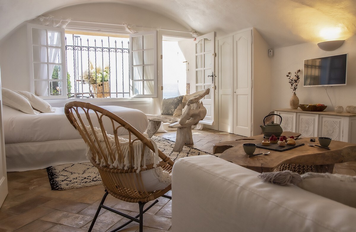 サントロペの中心部にある、ボヘミアンシックなスイートルーム