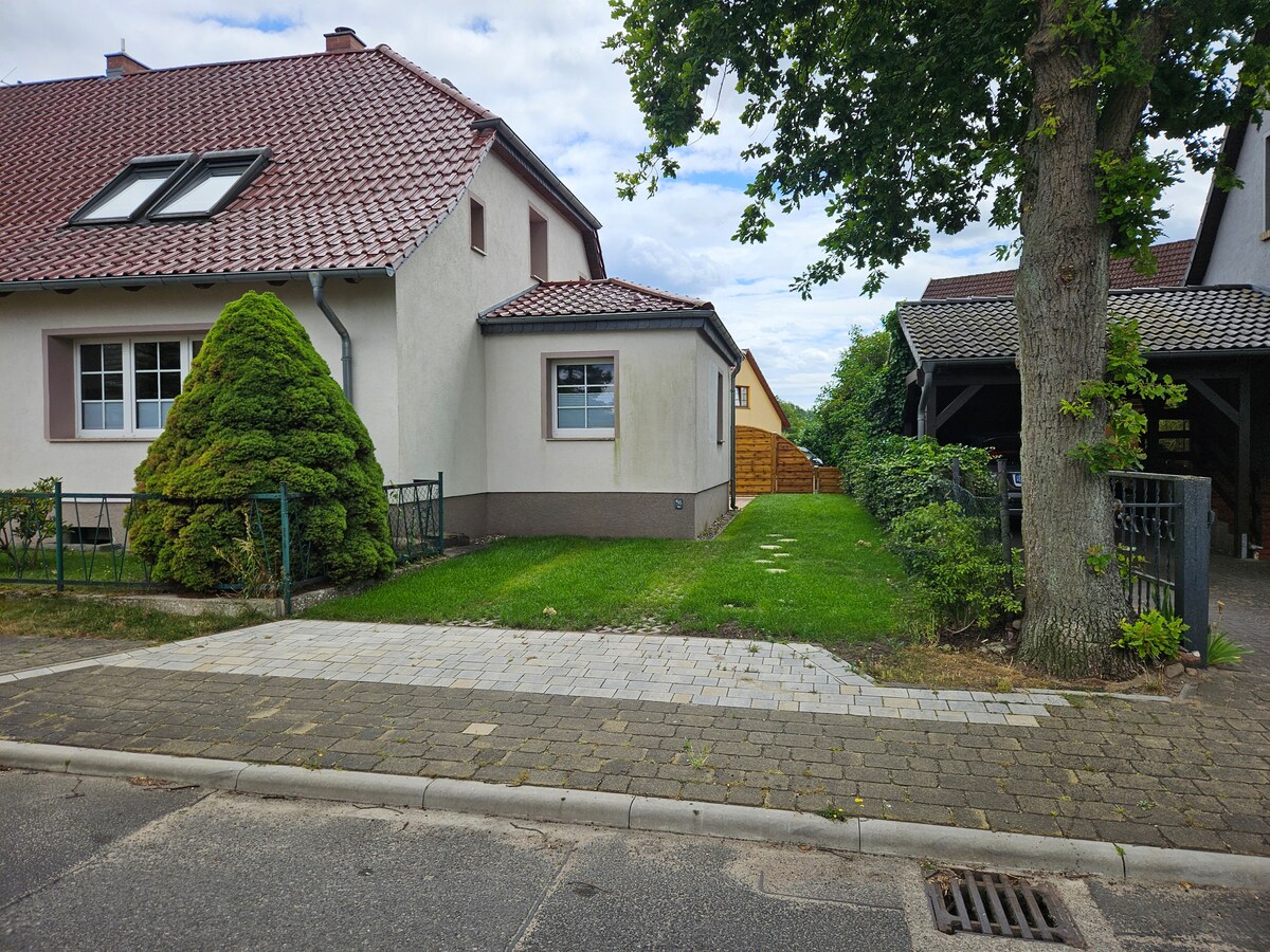 ベルリンとボストシューゼーの間に、メクレンブルク湖水地帯があります。首都からわずか2時間で、B96から7キロ離れた私たちの小さな村に到着します。 村の中心に位置する1200平方メートルの広い敷地内では、星空や風景を一望することができます。また、鳥類や自然の楽園を楽しむことができるだけでなく、湖での遊泳も楽しめます。