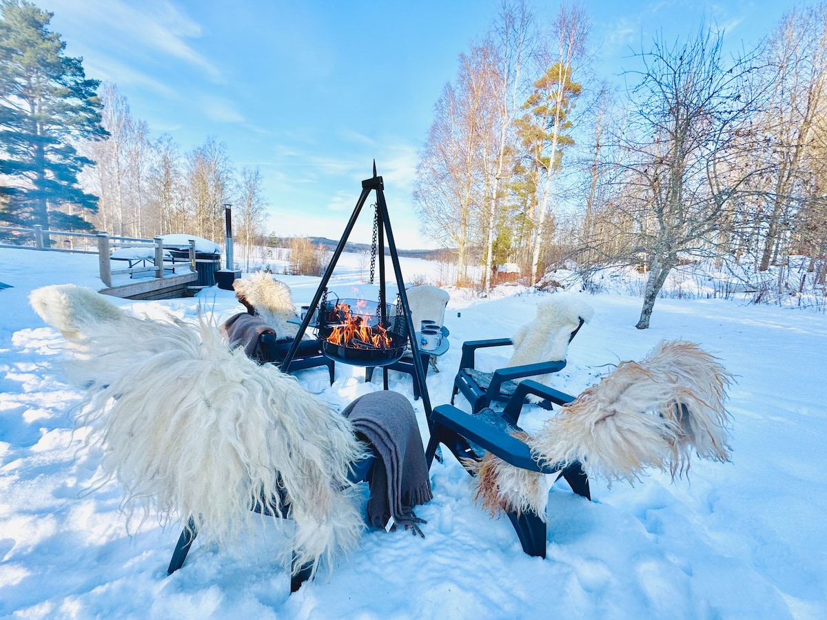 Villa Granhede -sjöläge med badtunna, eldstad m.m