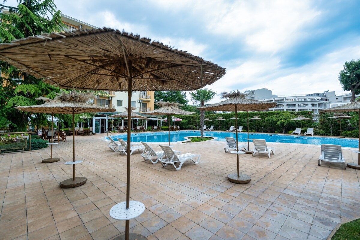 この穏やかなオアシスで休憩してリラックスしましょう。アズール・プレミアム4コンプレックスのセント・コンスタンティン・アンド・ヘレナにある理想の家をご覧ください。この新築の1ベッドルームのアパートは、手つかずのビーチや賑やかなバーからすぐの絶好のロケーションにあります。専用バルコニー、爽やかなプール、駐車場をご利用いただけます。 海岸の魅力と現代的な利便性を満喫しましょう。夢の海辺の暮らしがここから始まります! 〜宿泊施設全体で強力なWi-Fiをご利用いただけます。