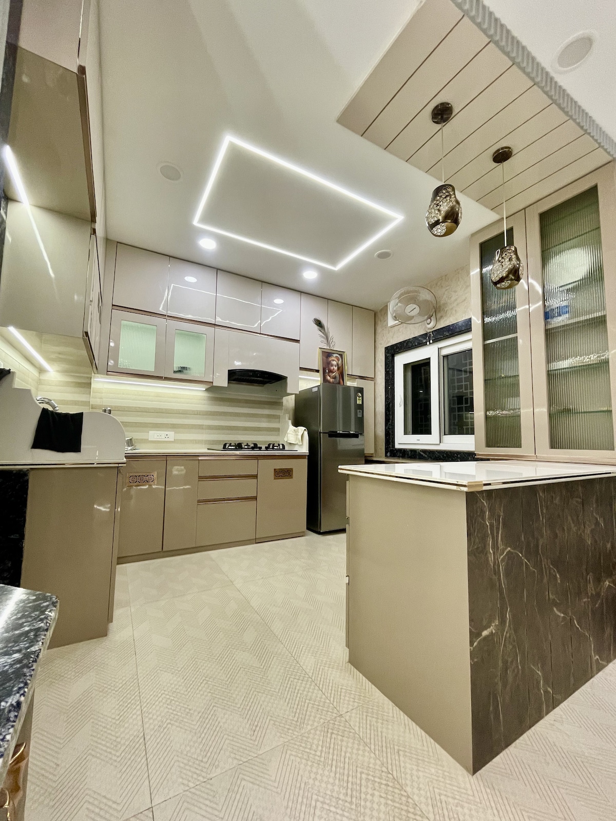 この1階のプレミアムスイートは、クリシュナをテーマにしています。 設備の充実したスタークラスの390平方フィートのスイートユニットです。 これには2部屋、フルキッチンがあり、大人3名様または大人2名様と子供2名様が宿泊できます。 広いテラスと駐車場もあります。 周辺には多くのレストランやショップがあります。 この場所は中心部に位置しており、すべての重要な場所が近くにあり、数分で行くことができます。 このAirBnBを通じて、私たちはこのプロジェクトの一環として、私たちの地域の困っている子供たちのためのコミュニティスクールを支援しています。