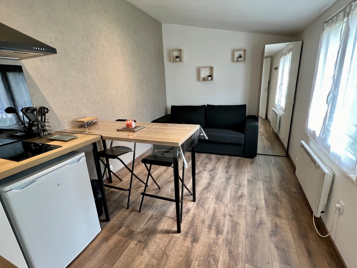 シャルル・ド・ゴール空港からわずか8分(5 km)の静かなメニル・アメロの村にある35㎡の新築マンション。 空港を経由する乗客にとって理想的な宿泊施設です。 ディズニーランド(35分)またはパーク・アステリックス(車で20分)を訪れる家族連れに最適です。 重要: リクエストに応じてオプション: 1.2名様のご予約の場合、ベッドとソファの両方をご利用になる場合は、18ユーロの追加料金が必要になります。 2.ベビーベッドが利用可能です。