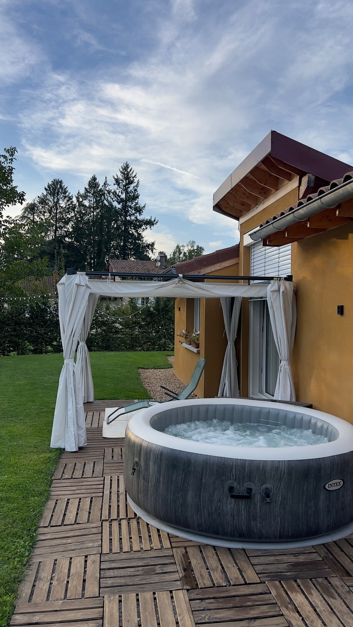 ヴォー・アン・ビュジェイのパティオがあるバケーションレンタル
