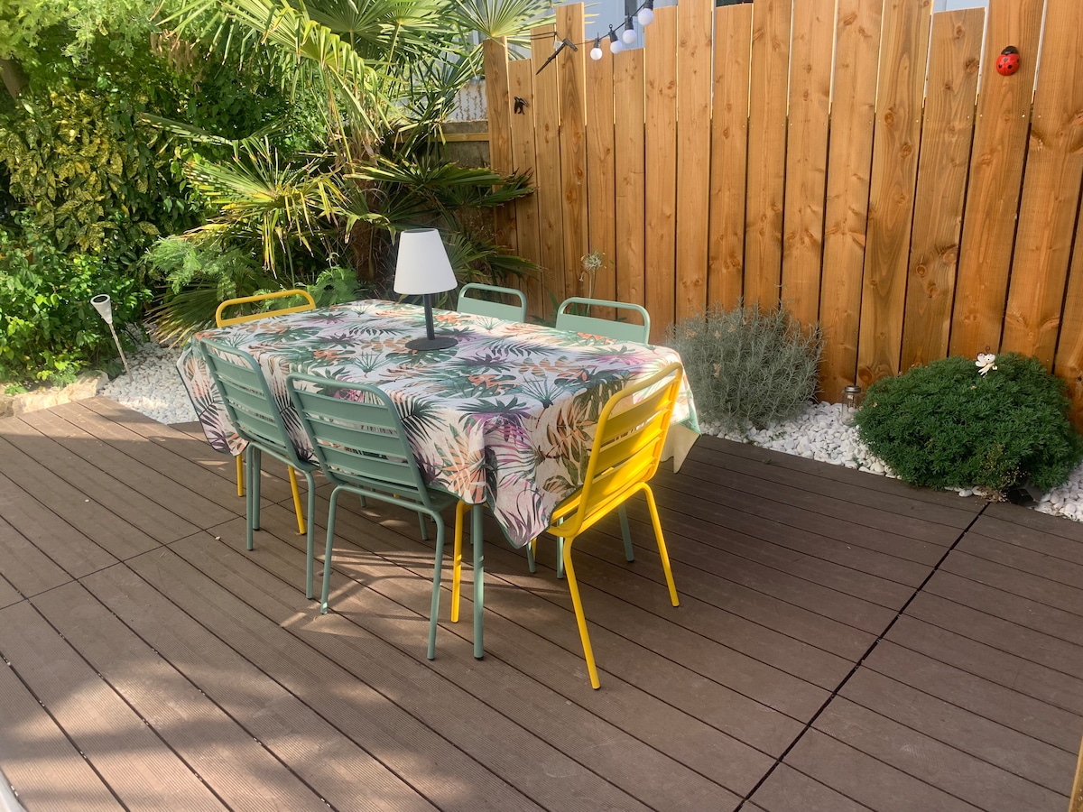 Appartement privatif dans maison Studio cabine 25 m2, tout doux en déco, refait à neuf 2024 💆🏻♀️ ⚠️Route passante : nos tarifs sont en cohérence avec la proximité de la route, ne réserver que si vous serez positif au moment de la note 5/5. Vous apprécierez la proximité de la station balneaire (grande surface 250m, basilique 450 m, plage centrale 1 km, gare 1 km) Parking gratuit à 250 mètres Terrasse pour garer : moto ou vélo Jeux pour enfant sur demande 💆🏼♀️SPA/JACUZZI only en été