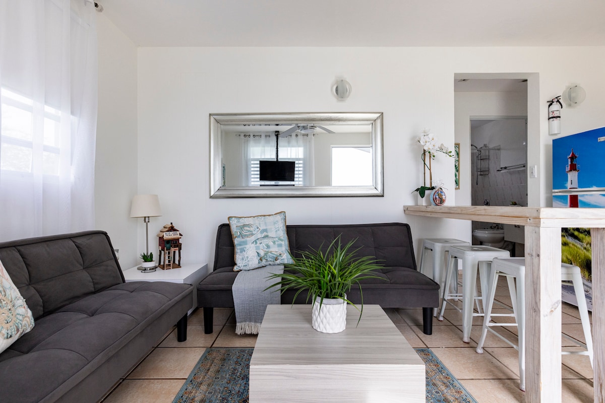 バッド・バニーが生まれ育った町を訪れてみませんか。プエルトリコで最も美しいビーチの1つであるプエルトヌエボビーチから車で2分の場所にある、小さくてモダンで居心地の良いアパートに滞在します。宿泊施設には、発電機と緊急用の貯水タンクが設置されています。 世界中からのゲストを温かく歓迎します。