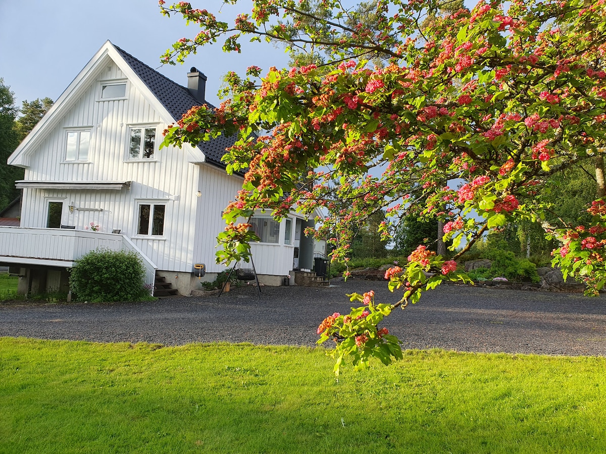 Stationsvegen 31, Nelaug. 電車: Gohead: Oslo-Stavanger- Kristiansand-Arendal. 徒歩5分 田舎で気取らない、日当たりの良い眺めはニデルヴァとネラウグを向いています。テレビ、ゲーム、屋外(夏)と屋内のおもちゃ。モーター付きボート、安全でインフレー式のカヤックで、島が豊かなネローグ湖とニデルヴァ(夏)を楽しめます。大人の自転車3台、1台は子供用です。レトロなカフェNelaug 600 m、Joker 15 -20 '車で、またはStoaショッピングセンターまでローカル電車で20'。 禁煙です。パーティーは禁止です。秩序のルールがあります。