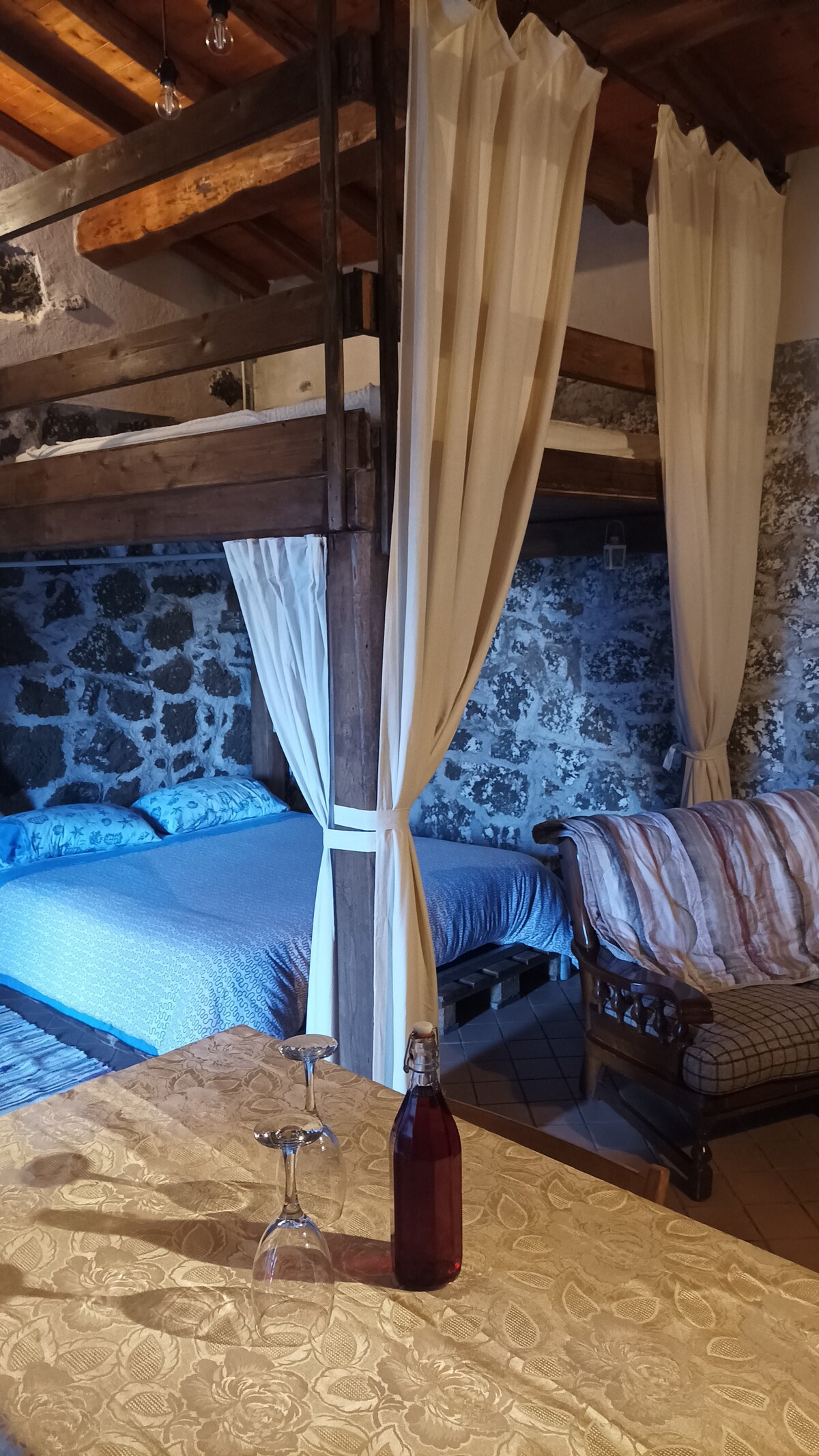 Between Fornazzo and Sant´Alfio, in the Etna park area, surrounded by vineyards and hazelnut groves, Casa Cavagrande was born. The Cavagrande loft is one of three lodgings within the recently renovated lava stone structure. The loft was created from an ancient millstone and has just been redesigned. The accommodation is equipped with free Wi-Fi, independent heating, a terrace with a view of Etna and is immersed in a vast land of 1.5 hectares. Free parking inside the property.