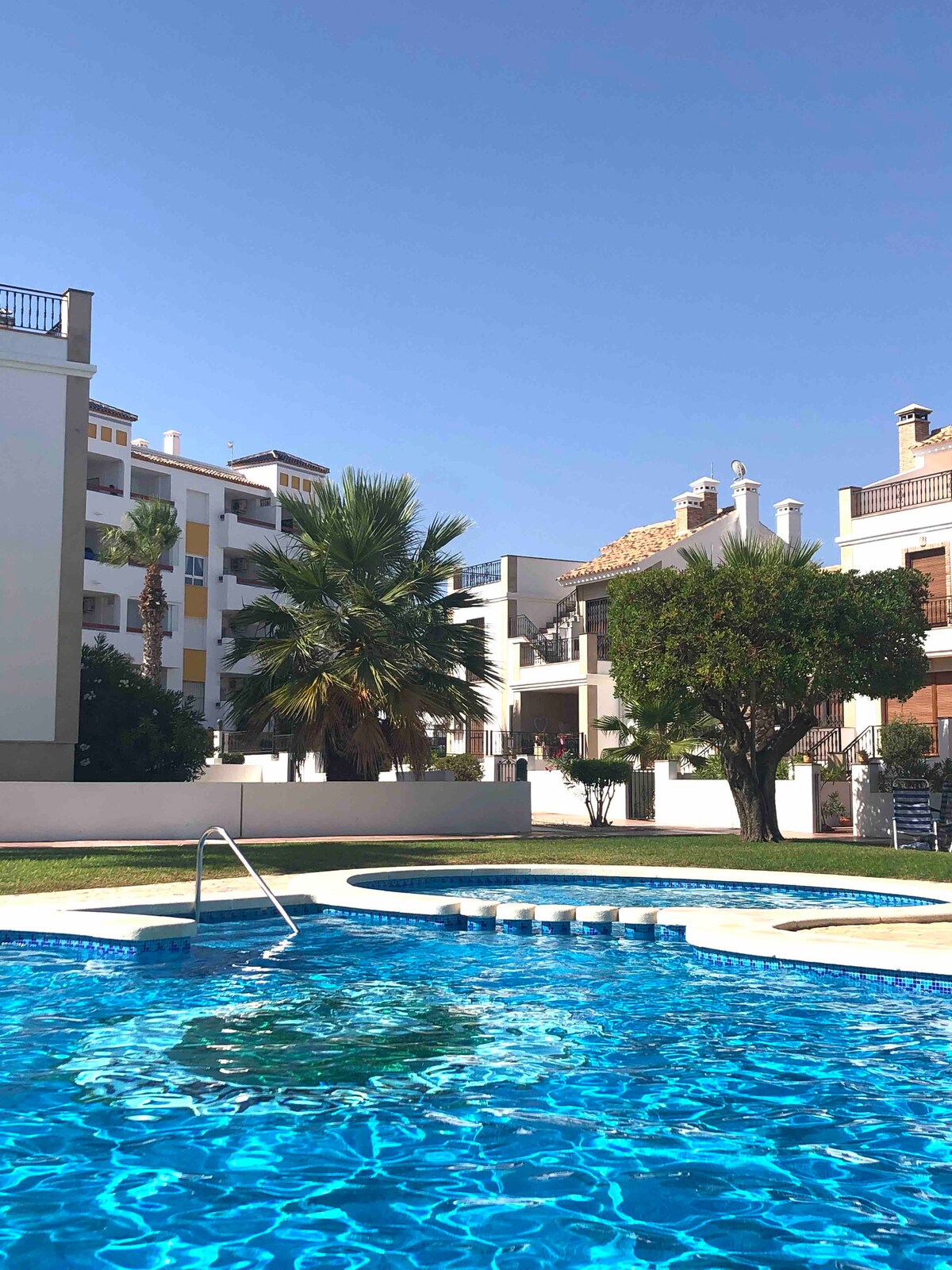 エレベーター付きの豪華な1階のエアコン付きアパートで、ゲート付きコミュニティ内の大きなプールと駐車場への段差のないアクセスが可能です。 車で5分、または電動自転車/スクーターをレンタルして、いくつかの素敵なビーチに行けます。約25軒のレストラン、バー、スーパーマーケットがあるラ・フエンテ商業センターから徒歩100m。 スペイン最大のショッピングセンターの1つであるラゼニア・ブルバードと、バーやレストランが立ち並ぶカボ・ロイグの「ストリップ」までわずか2マイル。 5マイル以内には受賞歴のあるゴルフコースが5つあります