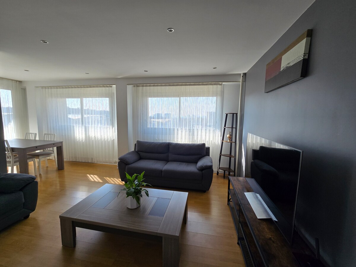 東病院とエューレポからすぐの場所にある、55㎡のモダンで明るいアパートでのご滞在をお勧めします。 出張者に→最適 2023年に→改装済み → エアコン キングサイズベッド1台付きの寝室→1室 クイーンサイズのソファベッド→1台 Netflixに無料でアクセスできる4K→テレビ 無料で高速かつ安全な→WiFi 電子レンジ、オーブン、食器洗い機を備えた→キッチン → 洗濯機 無料の専用→駐車場 近隣の公共→交通機関 今すぐブロンでの滞在をご予約ください!