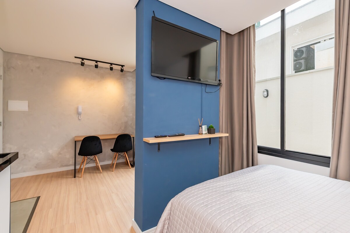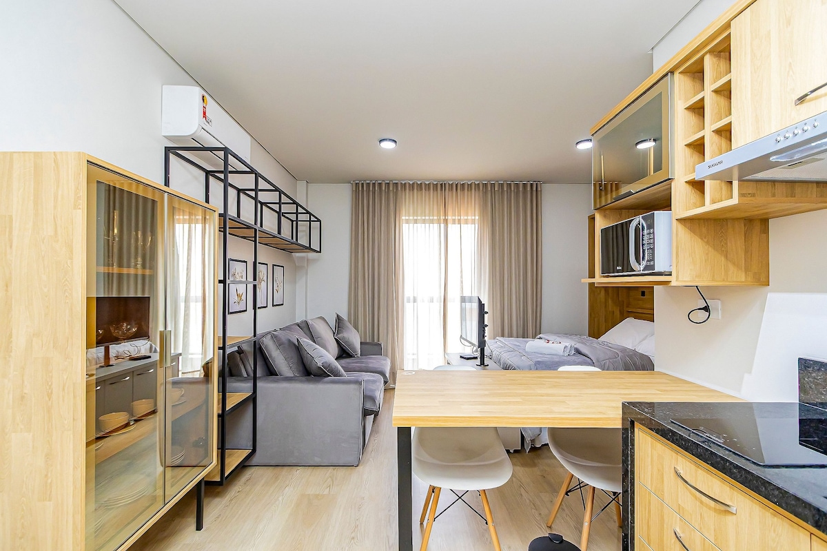 チェックイン時間は15時からです(セルフチェックイン)。 このユニークな場所に滞在することで、忘れられない思い出を作ることができます。素晴らしい温水プールやその他の素晴らしいスペースがあり、他では味わえない体験をお楽しみいただけます。素晴らしいインターネットを備えたコワーキング。ジム。ランドリー。新しいワンルーム。 最高のロケーション: Live Curitiba 3分 ショッピングパラジウム 3分 ユニバゴッツィまで4分 ユニセスマールまで3分 ベンチュラショッピング2分 スーパーマーケットまで3分 薬局まで2分 ダウンタウンまで7分