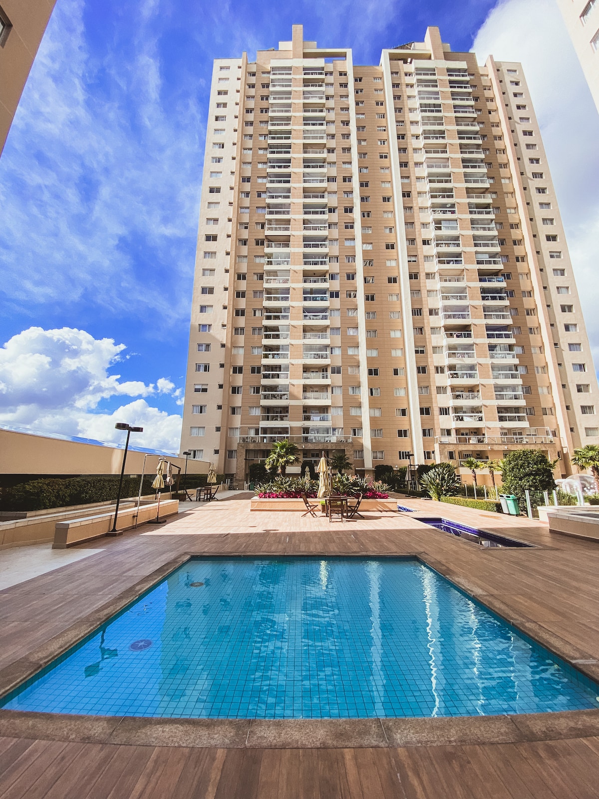 16階の1ベッドルームのアパートをお楽しみください。 Wi-Fi、50インチテレビ、コンロ、電子レンジ、浄水器、ガスシャワー、鍋、家庭用品が備わっています。 ゲスト1名様につきフェイスタオル1枚、バスタオル1枚、シーツ1枚、毛布が用意されます。 アパートには屋根付きの駐車スペースが1台分あります。 -訪問者の受け入れは禁止されています。 -禁煙、違反した場合は300レアルの罰金が科されます。 -ビル内にはランドリー(別途料金)と無料のコワーキングスペースがあります。