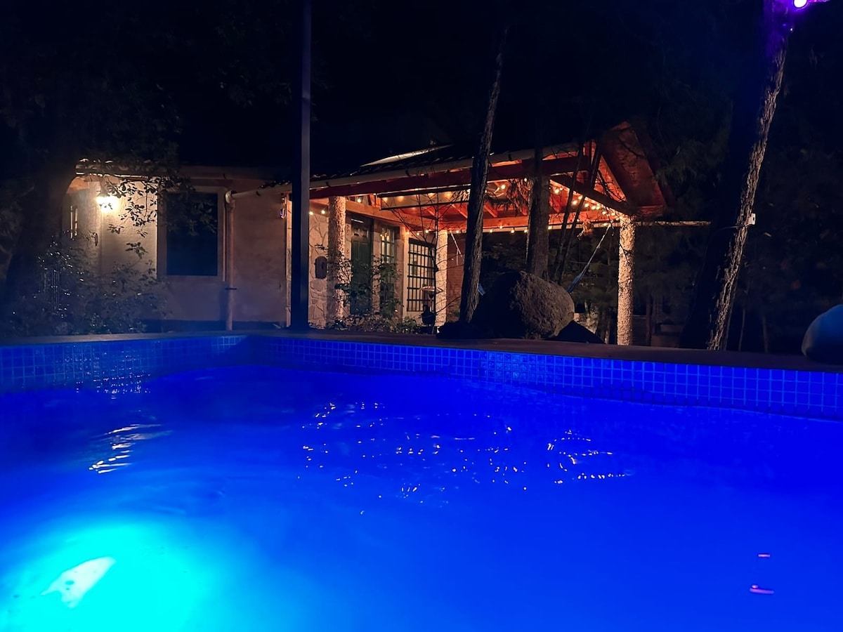 エルフキャビンへようこそ!バーベキュー、火遊び、散歩を楽しむために自然の中にあるプライベートな場所をお探しなら、ここがおすすめです。キャビンには、DVD付きテレビ、Netflix付きプロジェクター、ゲーム、電気ヒーター、フルキッチン、薪ストーブ、グリル、ファイヤーピット、ジャグジー、サンベッド、展望台、飲料水フィルター、Wi-Fi、UFOがあります。テマスカル、サウナ、ジャグジーのヒーターは追加料金でご利用いただけます。