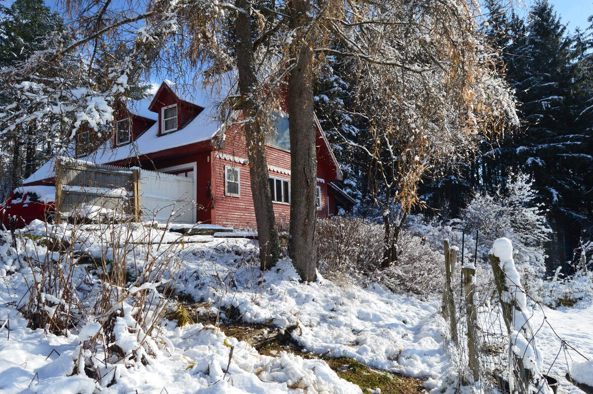 バーモント州北東部の王国にある田舎のプライバシー。バークマウンテンのレンタルやホテルと比較して素朴な2階建てのゲストハウスは、素朴で自然に近い魅力があります。 2階には大きな窓があり、庭、山、夜空と星、保護された農場の動物たちの様々な景色が見渡せます。 オーガニックゲストハウスの庭は、栽培期にアクセス可能です。 キングダムトレイル、クラフツベリー・オープン・センター、ヒルファームステッド・ブルワリー、バーク山、リンドンに近いです。セント・ジョンズベリー、カナダ国境/ニューポートまで30分です。 バスルームは2階にあります。バスタブはありません。
