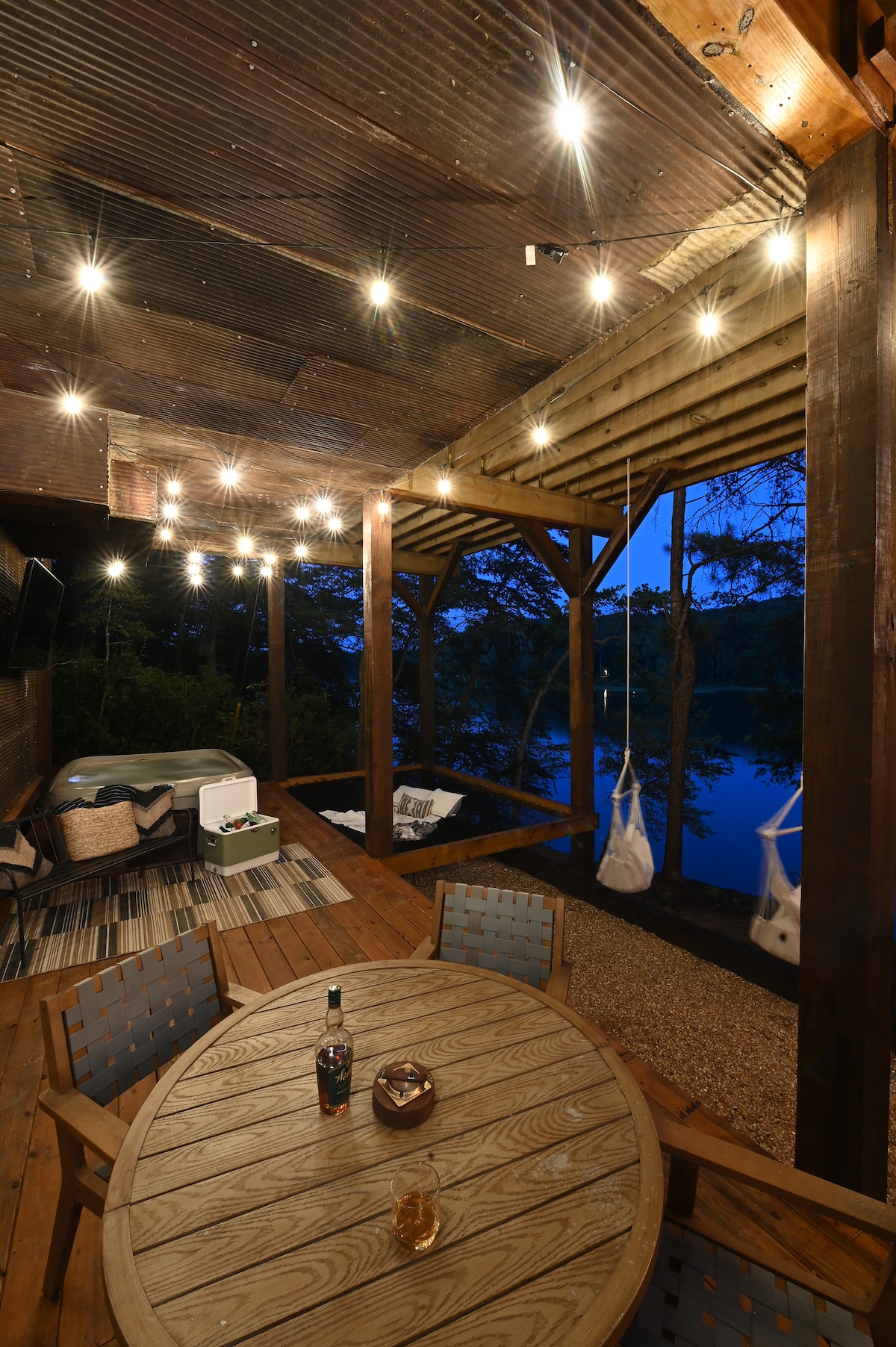 Located on the Tenn-Tom River just 1 mile from Downtown, this 500 sq ft upstairs carriage house will relax you with its waterfront view. The exterior is rustic continuing with cottage charm inside. You can relax on the sofa in the comfort of the living room, take a quiet nap in the bedroom or enjoy a game of Pacman. Try grilling with a great water view on the porch or swing. For a change of pace, 2 kayaks & a canoe are for your enjoyment!