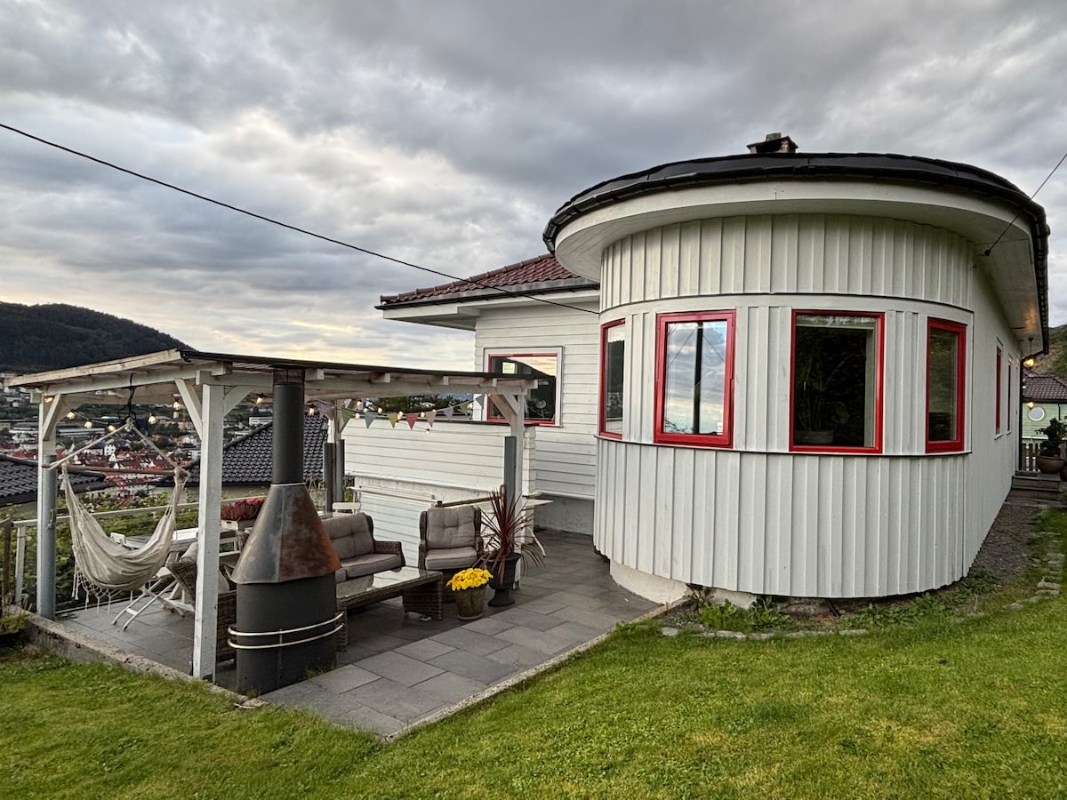 静かで確立された住宅地にあり、素晴らしい立地にある特別で部分的に新しく改装された一軒家です。家具も素敵で、設備も充実していて、ホテルのベッドも良いです( 120センチと150センチの2枚と180センチの幅の1枚)。)ベルゲン、街の山々、街のフィヨルドの眺めがすばらしい、アップサイクルで隠れ家的な素敵なガーデン。近くにはすばらしいハイキング地形(クヴァーヴェン、Ørnafjellet、ライデルホルン、Damsgårdsfjellet )がある。)スイミングエリアと水がある海までの短い道です。 都心まで車で8分。敷地内に2台分の駐車場があります。