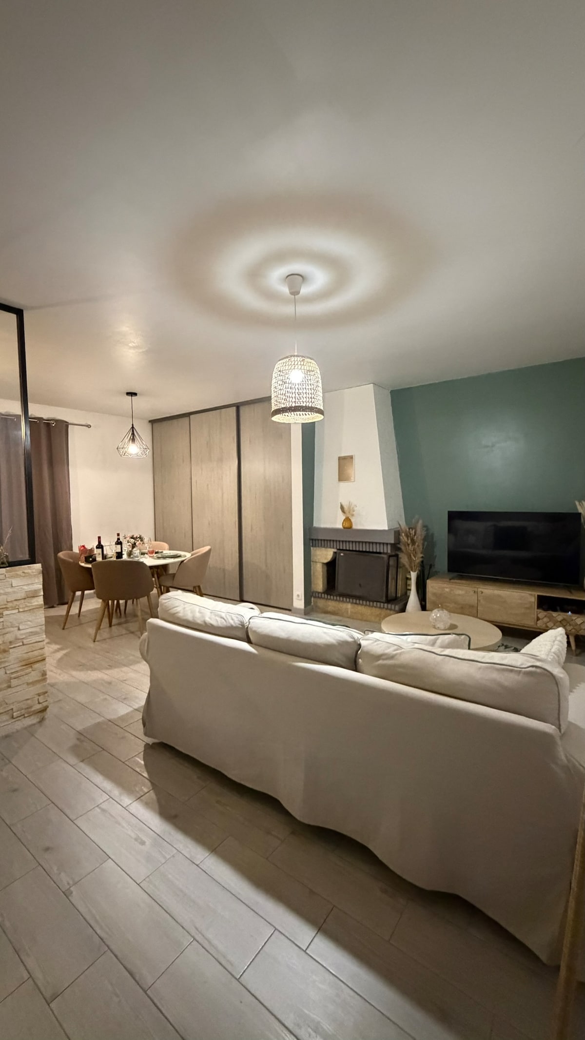 Logement Haut de Gamme avec Balnéo, Sauna, sofa tantra, porte secrète révèle un spa privatif avec sauna & table de massage. Offrez-vous une parenthèse de détente dans ce magnifique logement inspiré de Bali de 66 m² pour deux personnes. Tout confort : • Suite avec lit King Size (180x200), literie haut de gamme • Balnéo double avec ciel étoilé • Pièce secrète avec table de massage & Sauna • Salon avec cheminée à vapeur et télé connectée • Salle de bain avec une double douche • Fauteuil tantra
