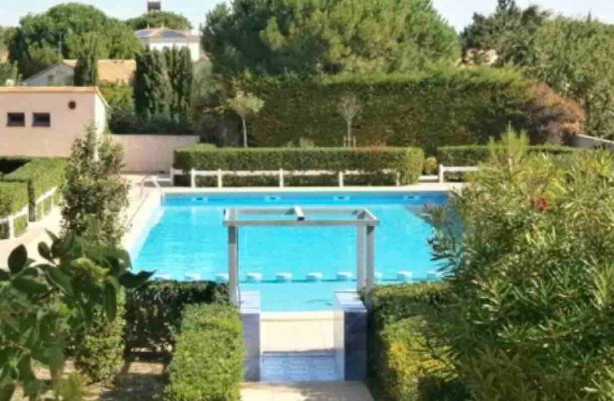 Venez séjourner dans cette charmante maisonnette du sud ☀️ Logement remis à neuf dans une résidence sécurisée avec parking privé gratuit sur place. Idéalement situé à 5min en voiture de la Mer Méditerranée (plage sauvage des aresquiers, avec le seul parking gratuit des alentours) , à 15min de Sète et de Montpellier. La résidence dispose de deux piscines communes, terrains de tennis, ping-pong, boulodrome