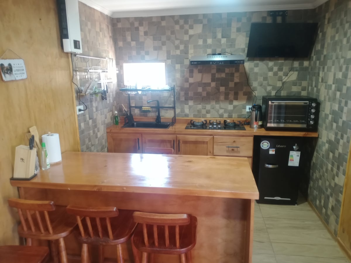 この静かでエレガントな空間でリラックスしてください。ブッシュロッジはカウィル・ピチレムにあり、カウィルラグーンからわずか5分、プンタ・デ・ロボスから10分の場所にあります。ユーカリの森に囲まれたキャビンは、日常生活やストレスから解放されるのに理想的です。以下の設備があります。 -ティナハとプライベートテラス - グリル - 寝室2部屋 - 設備の整ったキッチン - 暖房 - Starlinkインターネット - シーツとタオル - 専用バスルーム - プライベートパーキング