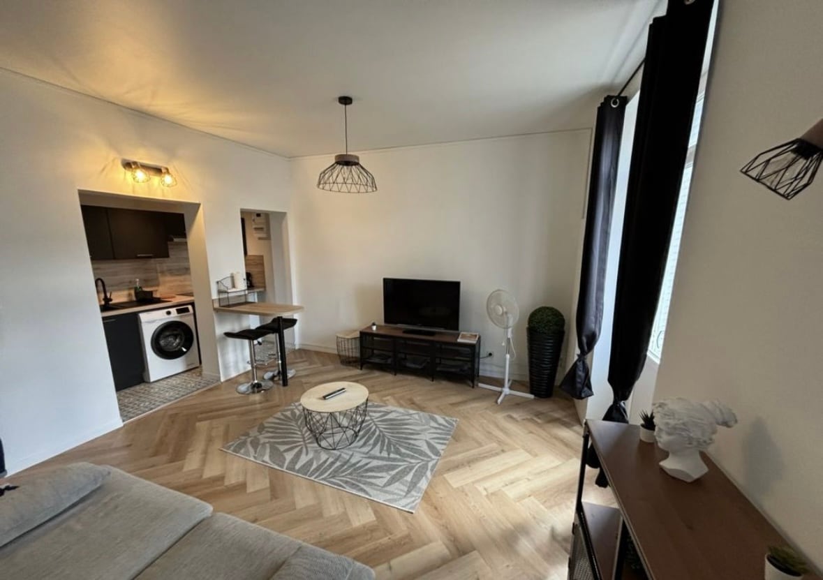 Premium and bright apartment of 48 m2 completely renovated and decorated by an architect. It offers a design, original and warm setting with a large living room-kitchen open to a fitted kitchen, a bathroom with toilet, shower and towel dryer and finally a bedroom with a queen size bed (160x200). Ideally located in the center, this apartment can comfortably accommodate up to two people. Household linen is provided.