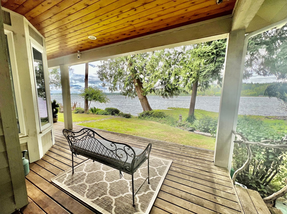 Along the shores of the beautiful Case Inlet and a few steps to the beach, this 4-bedroom waterfront home is the perfect getaway destination. Enjoy a 180 degree view of the water and a peek at the Olympic Mountain range through the kitchen on a clear day. Eagles fly overhead and seals visit the waters in front of the home daily, and if you’re lucky you’ll spot a small pod of Orcas swimming through to find a meal or an otter sun bathing on the floating dock.
