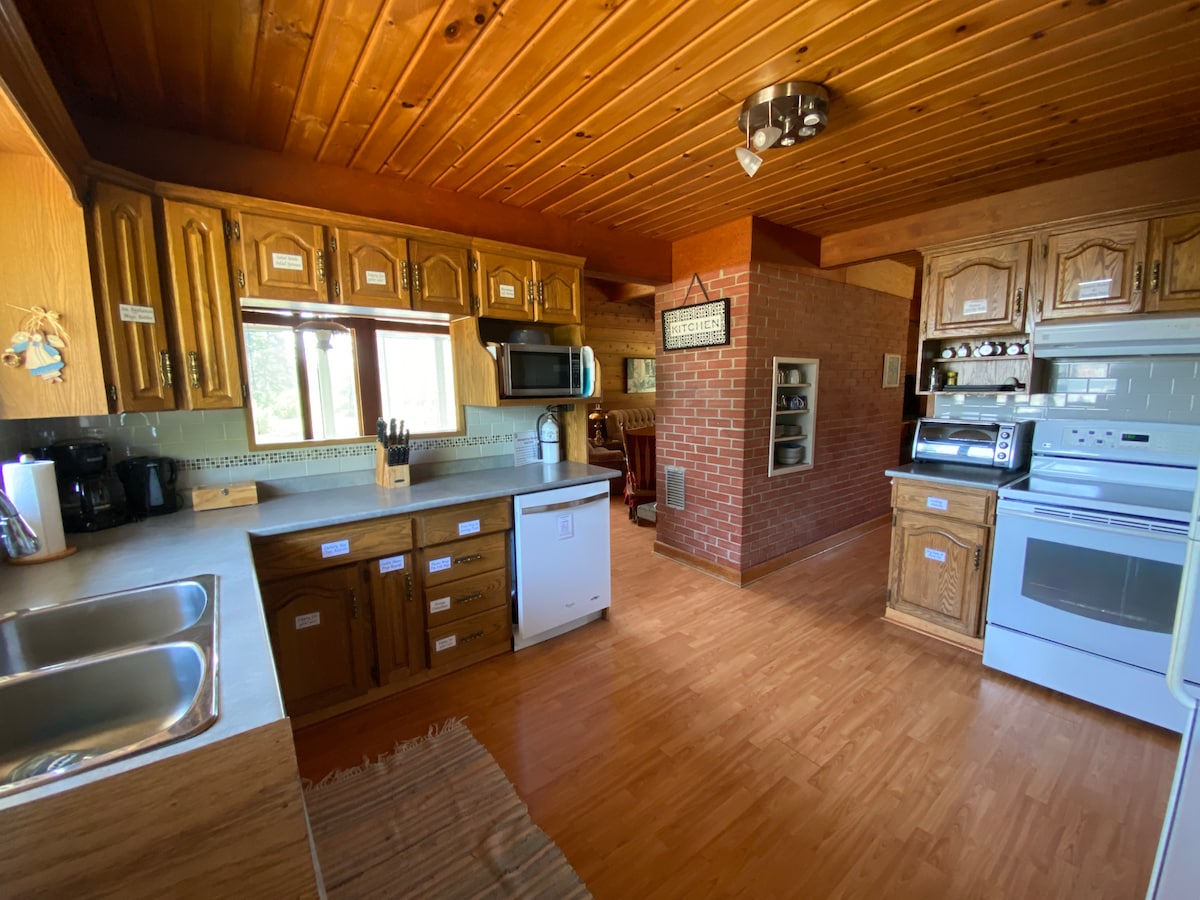 エルク島に面した美しい杉の家-湖の眺望が楽しめる3ベッドルーム!一年中の家では、夏は冷房、冬は薪ストーブと電気暖房で暖を提供します。この家には自然光が入り、娯楽に最適なとても広いダイニングとキッチンエリアがあります。プライバシーと就寝スペースのための、ベイウィンドウとフランスドアを備えたリビングルーム。湖に面した階段がエルク島に面した専用の海岸線に続きます。広いベランダと布団2組。ジャグジー- 4月から11月までご利用いただけます。屋外シャワー