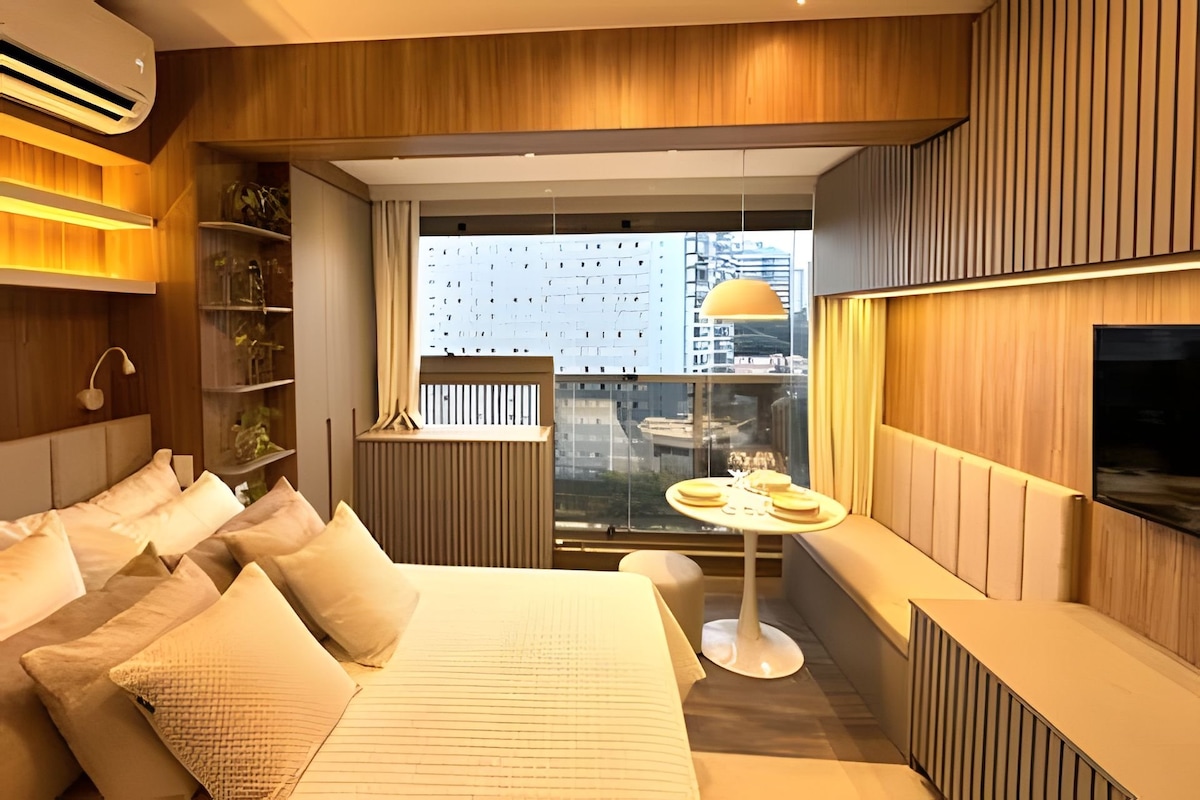 アヴェニーダ・ファリア・リマの最もおしゃれなエリアにあるモダンでスタイリッシュなアパート、APT DESIGN FARIA LIMAをお楽しみください。 ファリアリマとピニェイロスの地下鉄駅から徒歩数分、有名なバーやレストランへのアクセスも簡単です。 アパートの設備には、フルキッチン、4Kスマートテレビ、エアコン、高速インターネット、フルセットの寝具が含まれます。忘れられない滞在に最適です! - 24時間受付 - 設備の整ったジム - 屋外プール - OMOランドリー