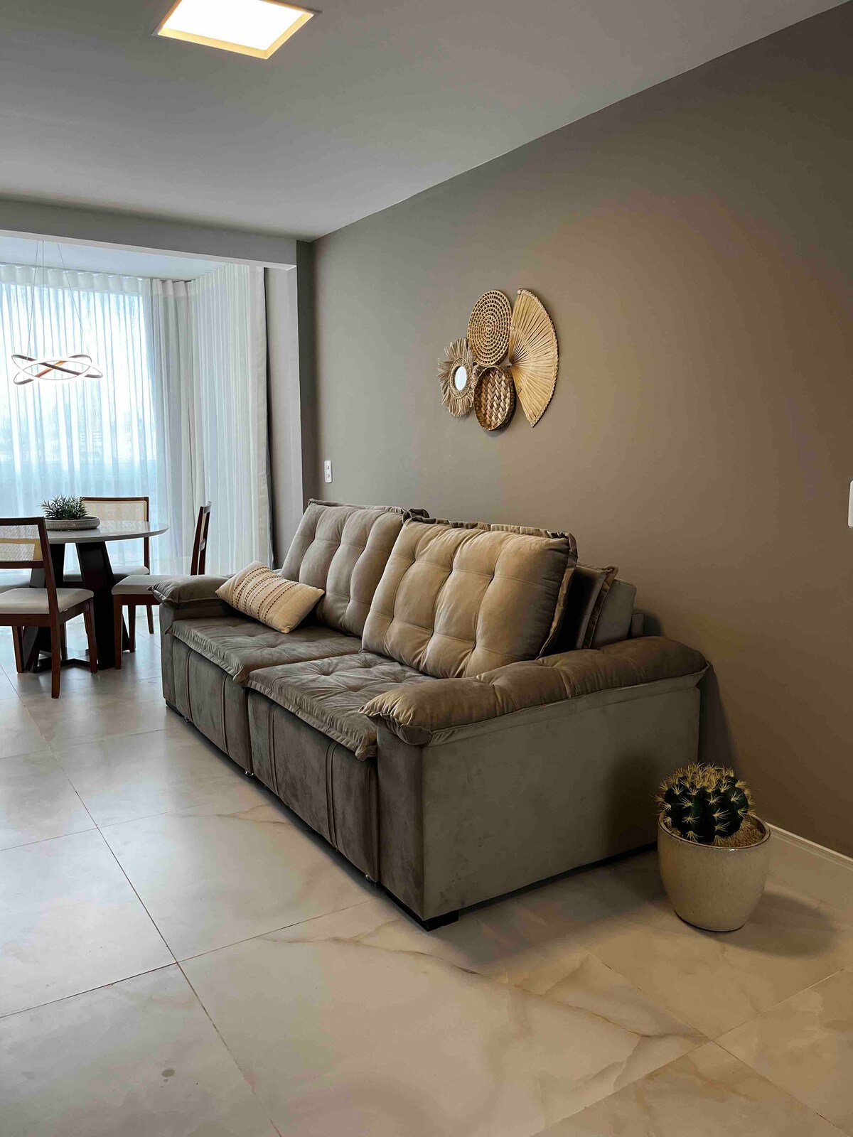 アパートは居心地が良く、イタプアーニャビーチから1km弱(徒歩10分)、州最大のショッピングモールであるショッピング・ヴィラ・ヴェーリャから500m弱(徒歩5分)の場所にあります。建物は賑やかな大通りに面していますが、駐車場はありませんが、広い通りには簡単に駐車できます。 アパートは3階にあり、階段でアクセスしますが、それでも経験を損なうものではありません。
