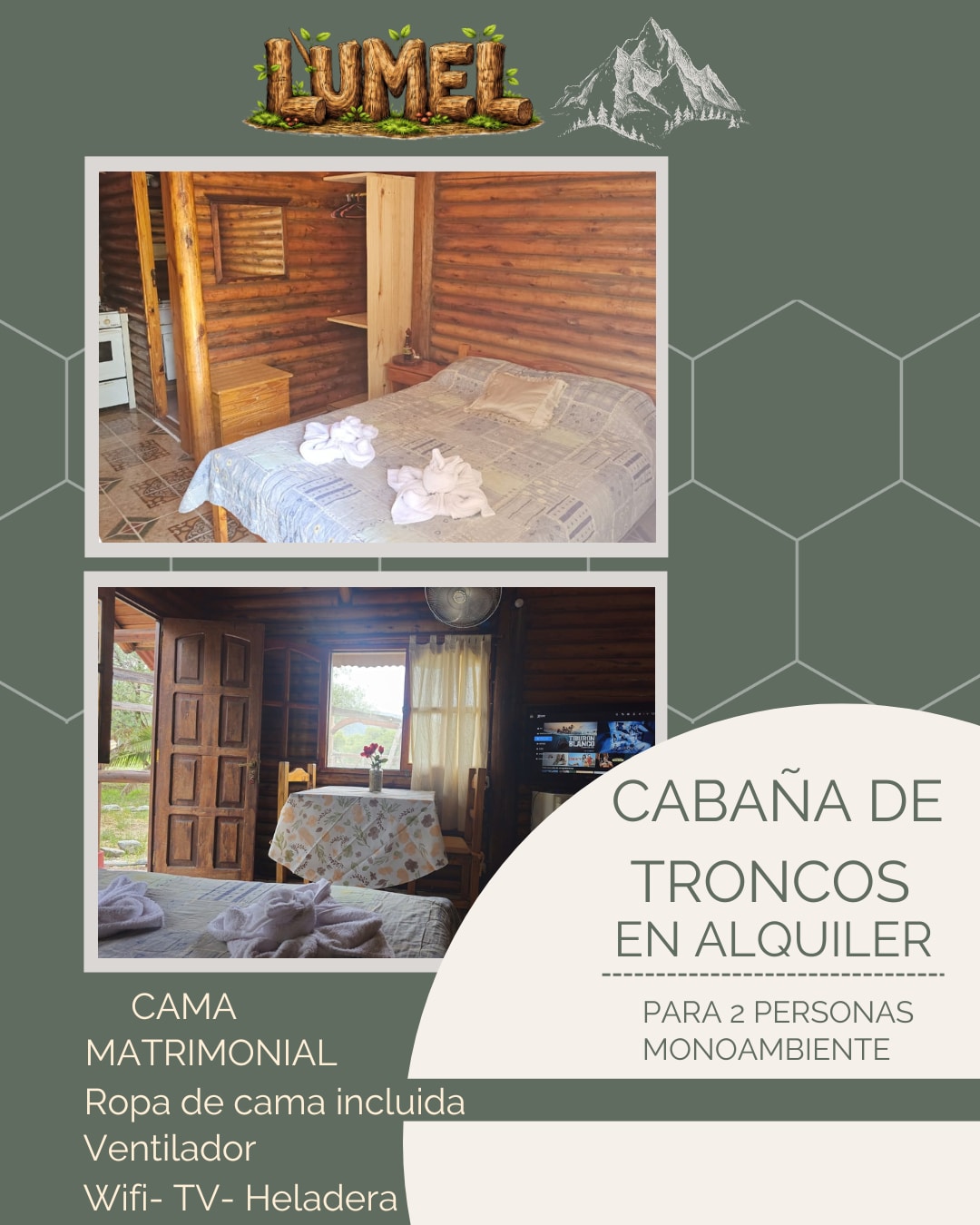 Las cabañas son amplias, tienen una habitación con cama doble, un baño, una cocina comedor, y un living con la dos camas simples, todo rodeado de ventanales con vista a las sierras. Garage privado con galería y parrilla. Rodeadas de mucho verde y arboles para poder recorrer y tomar unos ricos mates. A unos metros se encuentra el dique piscuyaco donde se puede meter al agua y disfrutar de los puestos al rededor! .