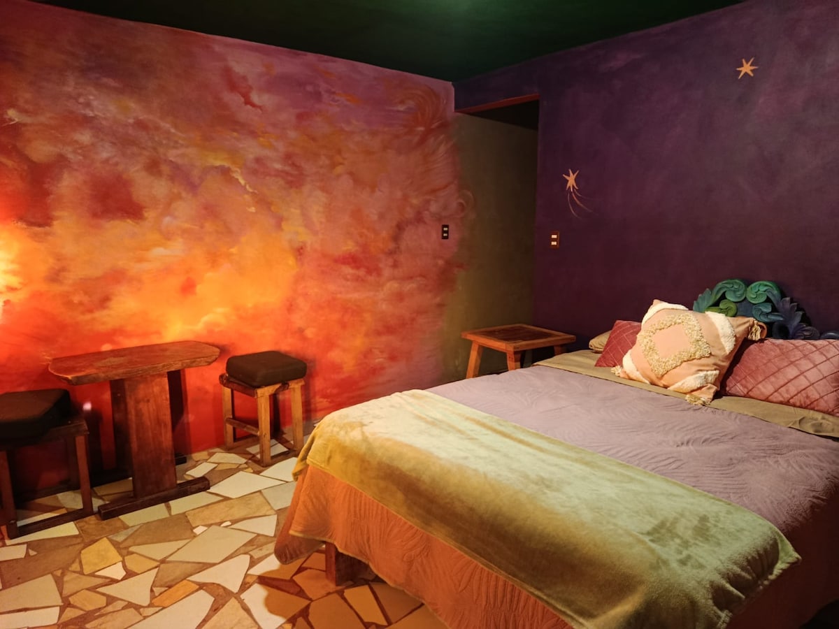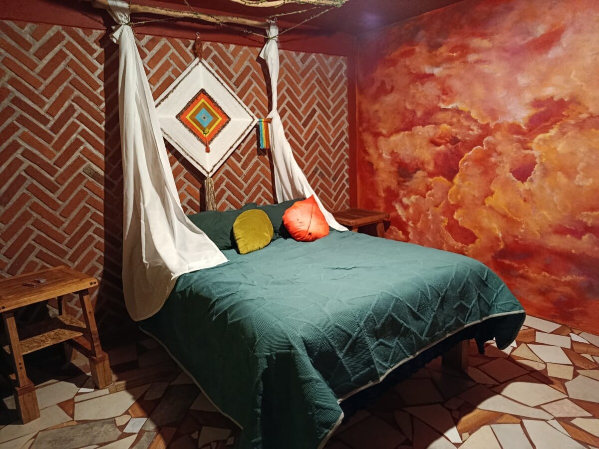No querrás irte de este lugar tan único y encantador. todas nuestras habitaciones están diseñadas con el corazón y llenas de detalles con vitrales y pinturas únicas inspiradas en el cacao, el arte y la magia