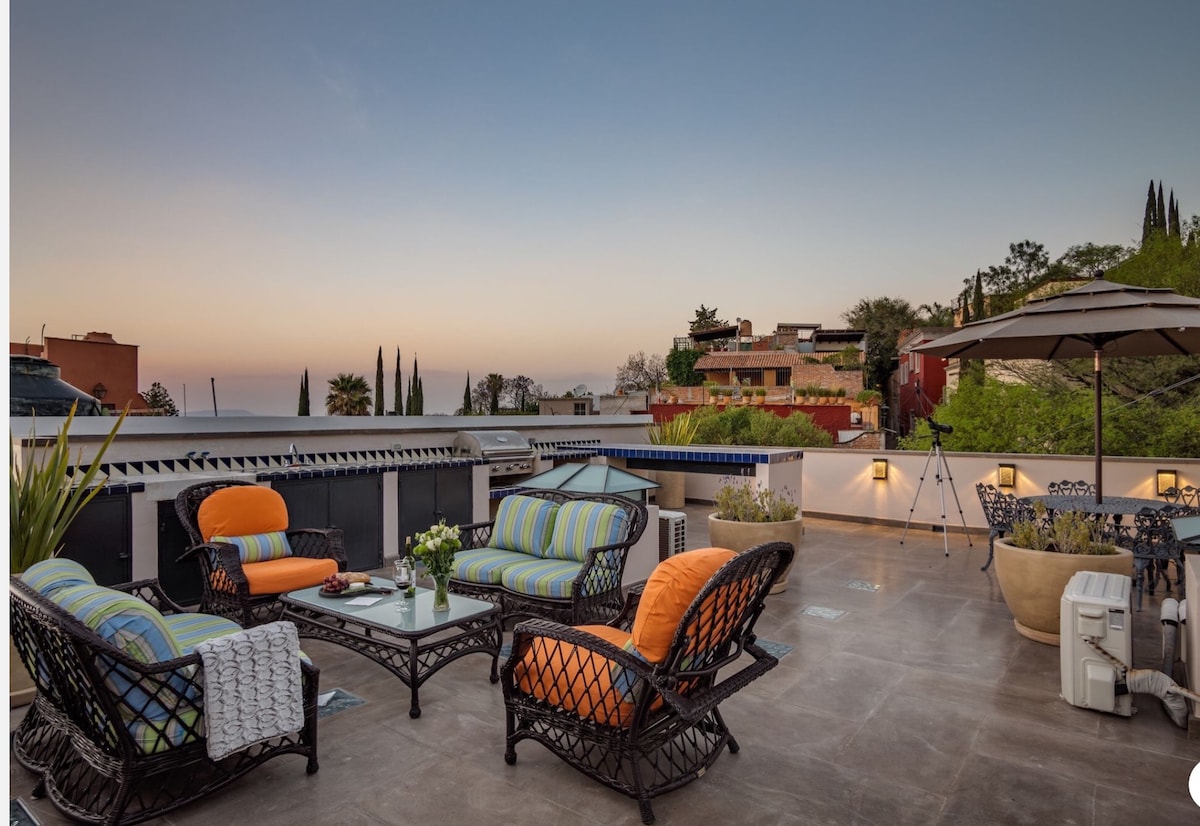近隣全体で最も高いパティオ - Casa de las Nuebes (雲の中の家)はがっかりさせません!カップルや友達2人に最適です。 この美しいインテリアデザイナーが所有するワンルームは、訪問者がサンミゲルで愛する魔法のような魅力をすべて備えています。 セントロからわずか数分徒歩で、繁華街の騒音から離れた非常に安全な6戸のゲート付きコンドミニアムユニットに到着します。 朝の熱気球、夕日、サンミゲル・デ・アジェンデの素晴らしい360度の景色をお楽しみください!