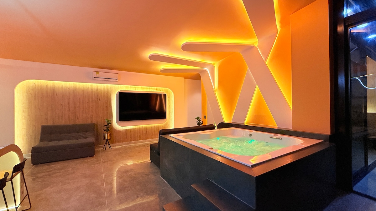 パノラマシティビュー、専用ジャグジー、マッサージ、ベッド2台