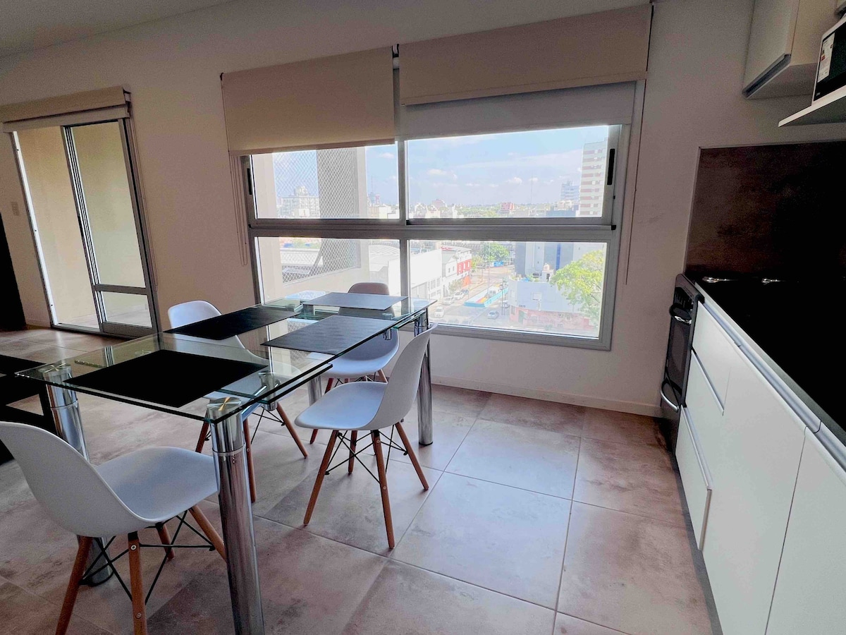 ドホの美食の中心地にある壮大なGreen Haus Belgrano複合施設内の2部屋のアパートメント。24時間セキュリティ。フルアメニティ。屋内プールは一年中温水で、夏には屋外にして、キンチョ、ジム、子供エリアがあります。最大速度300 MBのWi-Fi、リモートワークに最適。最大4名様までご宿泊いただけます。長期滞在割引。 有料でガレージをご利用いただけます。 デジタルロックによるアクセス