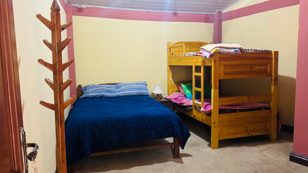 🌴 Cabaña familiar con piscina y wifi rápido en el Trópico de Cochabamba 🌞 🏡 Tu espacio privado incluye: 3 dormitorios amplios y cómodos 1 baño moderno y limpio Sala de estar acogedora con Smart TV y Netflix WiFi de alta velocidad Aire acondicionado en todos los ambientes ☀️ Zonas comunes del hotel: Piscina para adultos y niños con toboagua Cancha de beach volley Parqueo privado y seguro 📍 Ubicación: a minutos de los principales atractivos del Trópico de Cochabamba.