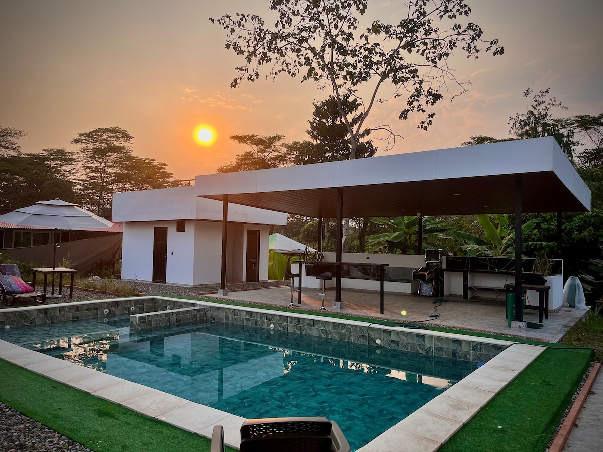 ビジャビセンシオの都市部からわずか5分の場所にある、自然の中でくつろぐために作られた、すべての快適さを備えた新しい空間をお楽しみください。 3つの広々としたベッドルーム、すべてに専用バスルームとエアコンが備わっています。 書斎エリア、オープンキッチン、テレビ付きのリビングルーム(共用エリアには天井ファン)。 7台分の駐車場 トロピカルガーデン 子供用エリア、ジャグジー、ミニテジョ、プールの前にあるパーゴラの下のバーベキュー付きプール。