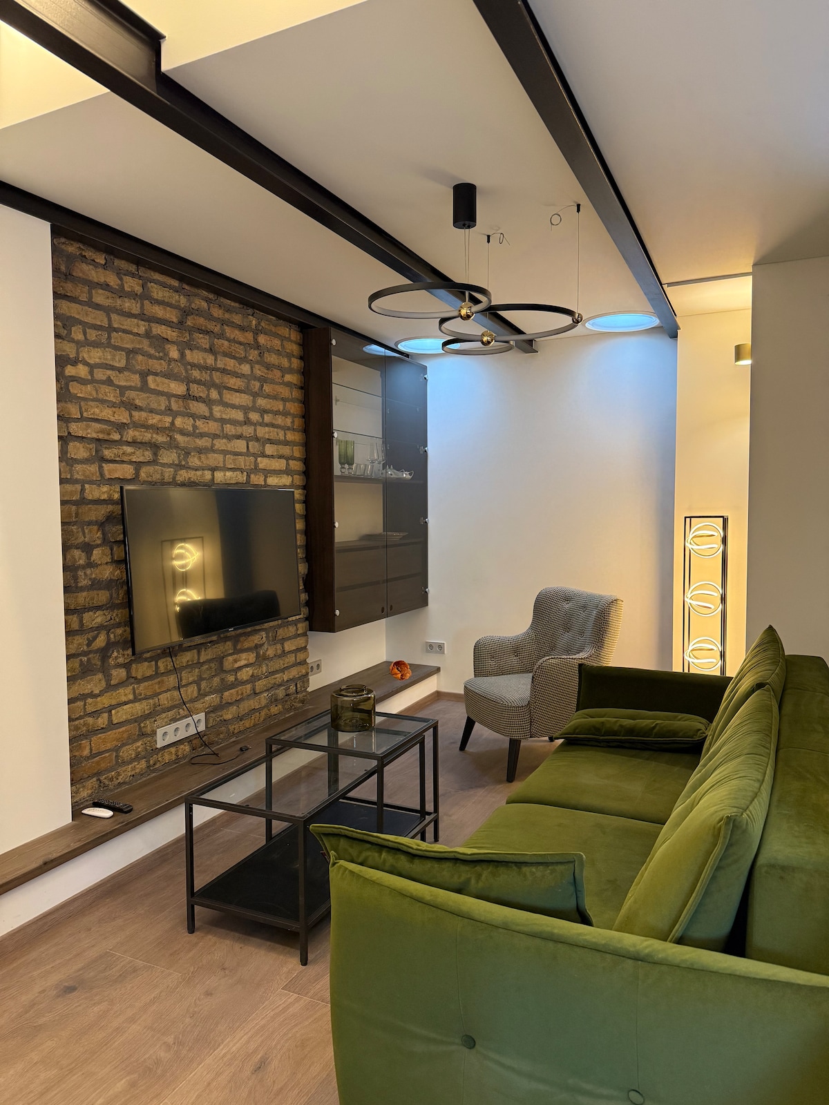 モダンなデザイン、有名な高層ビルの最上階24階にあります。大きな窓からは、街とその向こうの素晴らしい景色を眺めることができます。アパートには、マッサージジャグジー付きの大きなバスルーム、OLEDテレビと12のスピーカーを備えた高品質のホームシアターシステムなど、多くの設備があります。ショッピングモールの上にあり、片側には旧市街、もう一方には新しいビジネス街があり、どちらも徒歩圏内です。カップル、ビジネス旅行者、ご家族連れにおすすめです。
