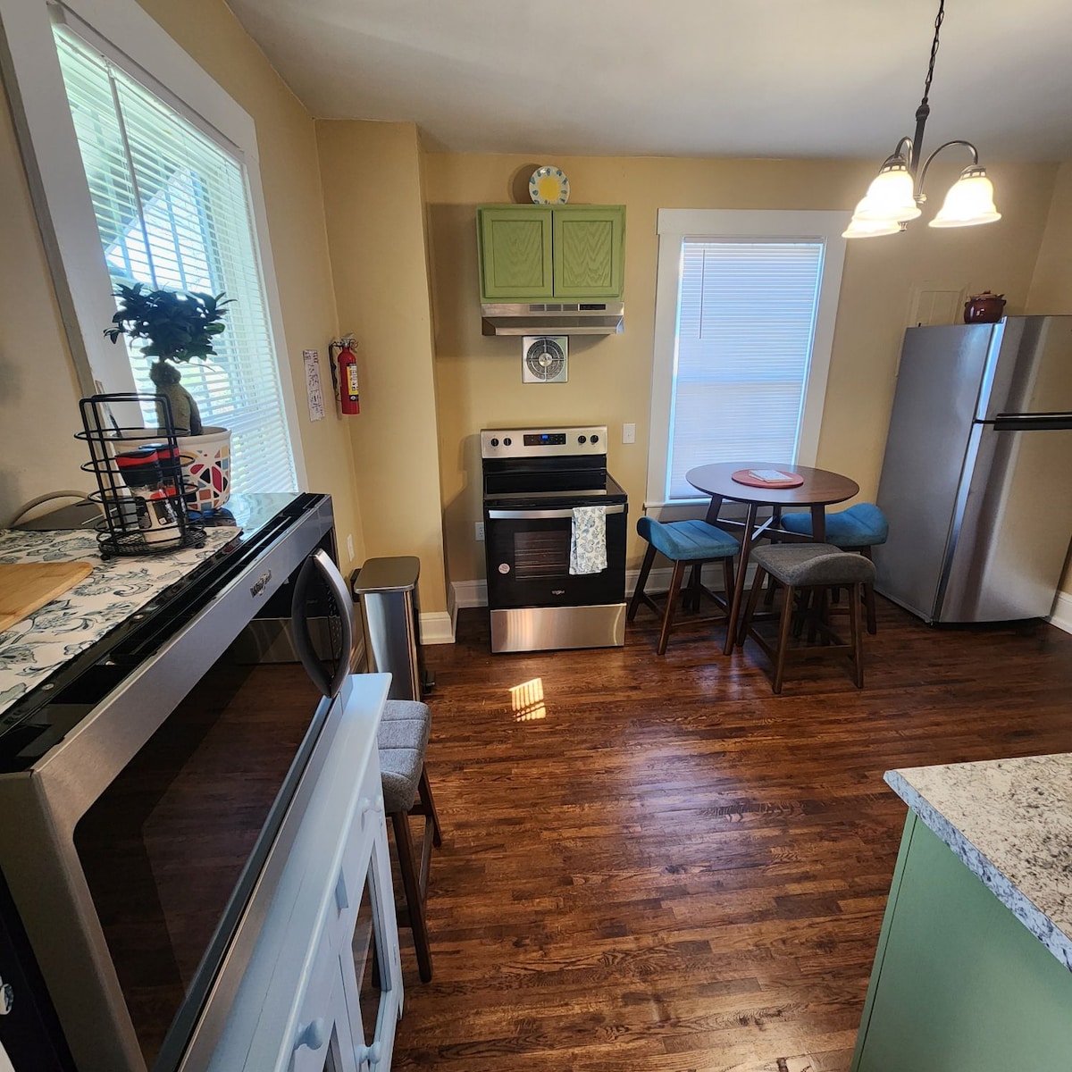 バージニア州ダンビルのメインストリートにある、美しく保存された歴史的な家の中にある、1ベッドルーム、1バスルームのアパートで、歴史と快適さの完璧な融合を発見してください。 素晴らしい自然光、絶妙なステンドグラスのアクセント、温かみのある雰囲気を備えたこの空間は、リラックスした休暇に最適です。
