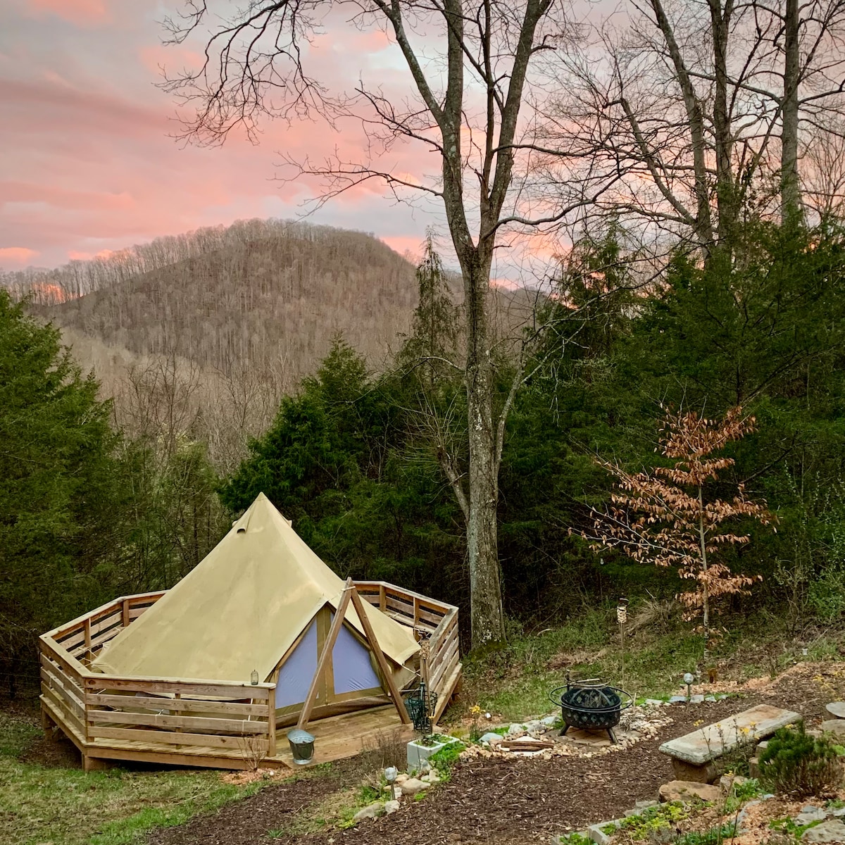 ご予約前に説明をお読みください! 手作業で設計・建てられた、この美しくてユニークなグランピングテントをお楽しみください。 テントはジョージ・ワシントン国有林のふもとにあります。 このスポットでは、自宅のような豪華さをすべて備えた、他に類を見ないアウトドア体験を提供しています。 自然の音に囲まれてリラックスし、日常生活の喧騒から解放されましょう!