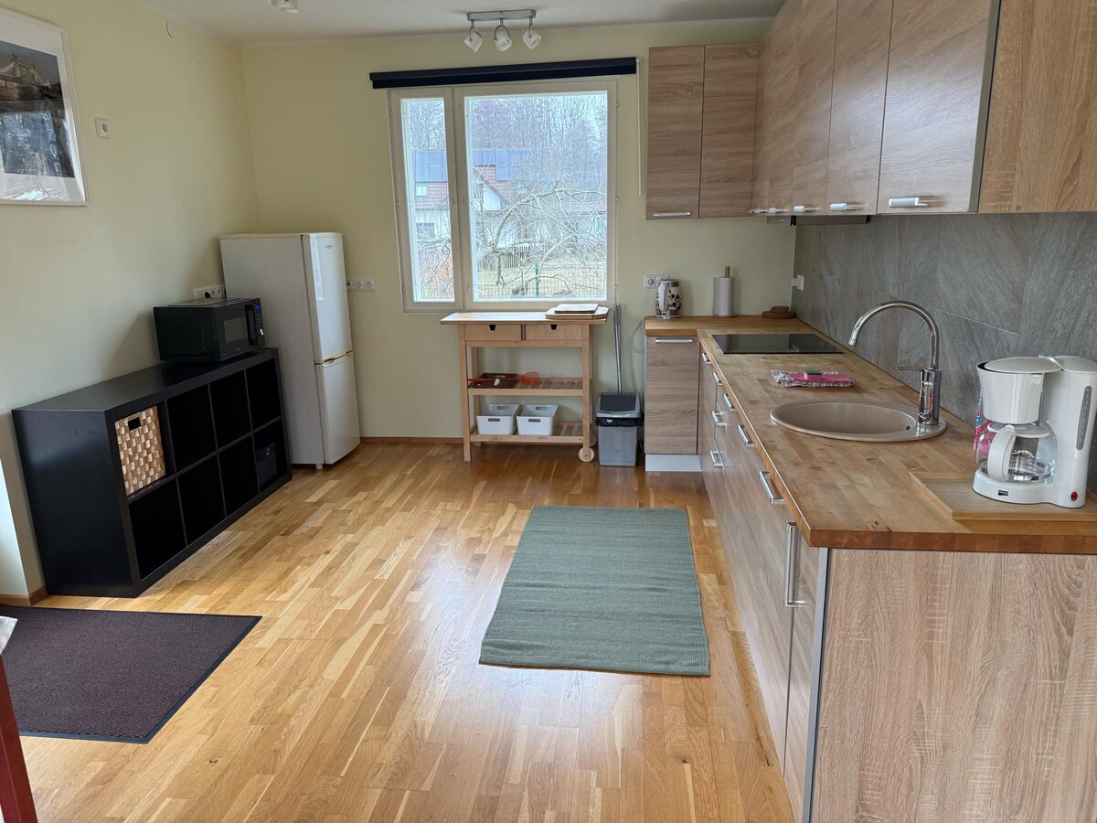 快適な家、広い専用庭、家具とジャグジー(+45ユーロ/滞在)を備えた大きなテラス。 スマートロックを使用したセルフチェックイン。 無料Wi-Fi、ビデオ通話用40Mbit/s以上。 家の中には無料のサウナと暖炉があります。 無料のバーベキュー炭グリル。 無料駐車場。裏庭には古代のオークの木々の下に焚き火をする場所があります。 家の裏には自然の小川があります。 自然愛好家のための静かな田舎(パーティーハウスではありません)ですが、タリンから車で20分です。 近くには平和な森の小道があります。 歴史的なヴェーナ邸宅は美しい公園と大きな遊び場があり、900m先にあります。