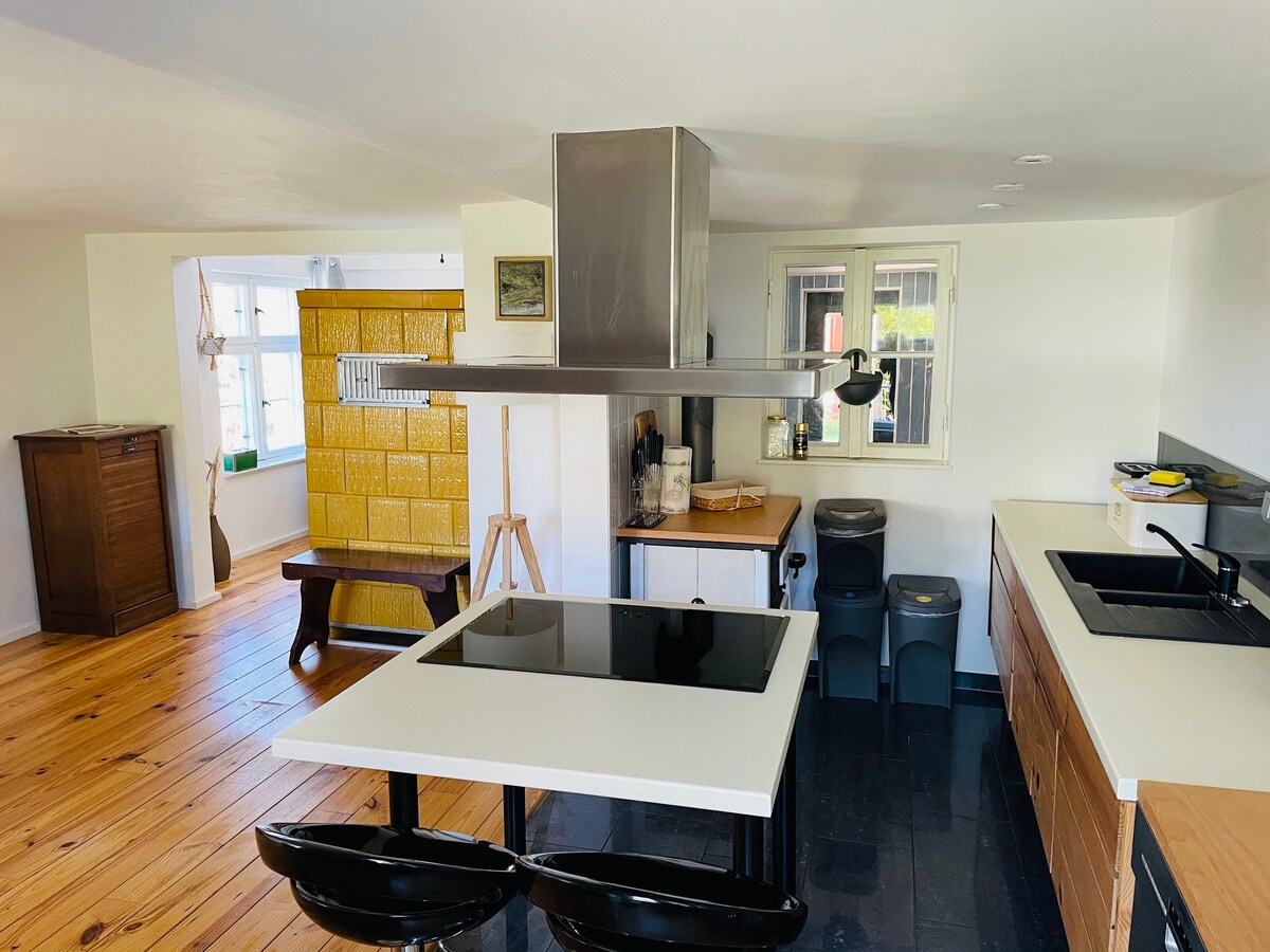 海へ行こう。かつての校舎で休暇を過ごそう。 私たちの100年前の家は、リューゲン島のあまり観光客の少ない場所の一つである、ヴェストリューゲンの小さな村に静かに位置しています。自然と静けさをお求めなら、ここがぴったりです。ヒデンゼー、アルコナ岬への小さな旅行、または海への長い散歩、そして夕方には私たちの農場で太陽の下に座るか、冬にはタイルストーブを点けてお茶を楽しむことができます。