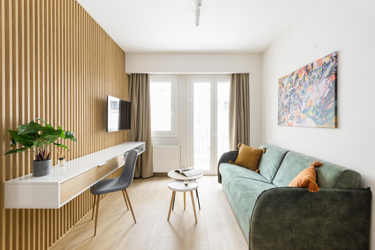 街の中心部にあるユニークでミニマルなエレガントなお部屋