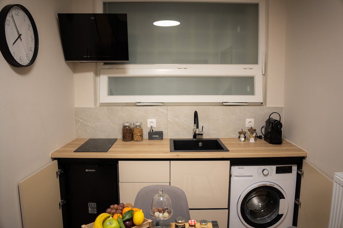 街の中心部にあり、美しいビーチの隣、港からすぐ近くにある、豪華に改装された、細部にこだわった35平方メートルの1階のアパートです。 アパートには、快適な滞在に必要なものがすべて揃っています。50MbpsのWiFi、広々としたシャワールームにあるジャグジーシャワー。また、ヴォロスの中心部を見渡せるバルコニーもあります。 市場や娯楽の真ん中にあります。市営駐車場(営業時間中は有料)があり、家の周辺には無料の駐車場もあります。